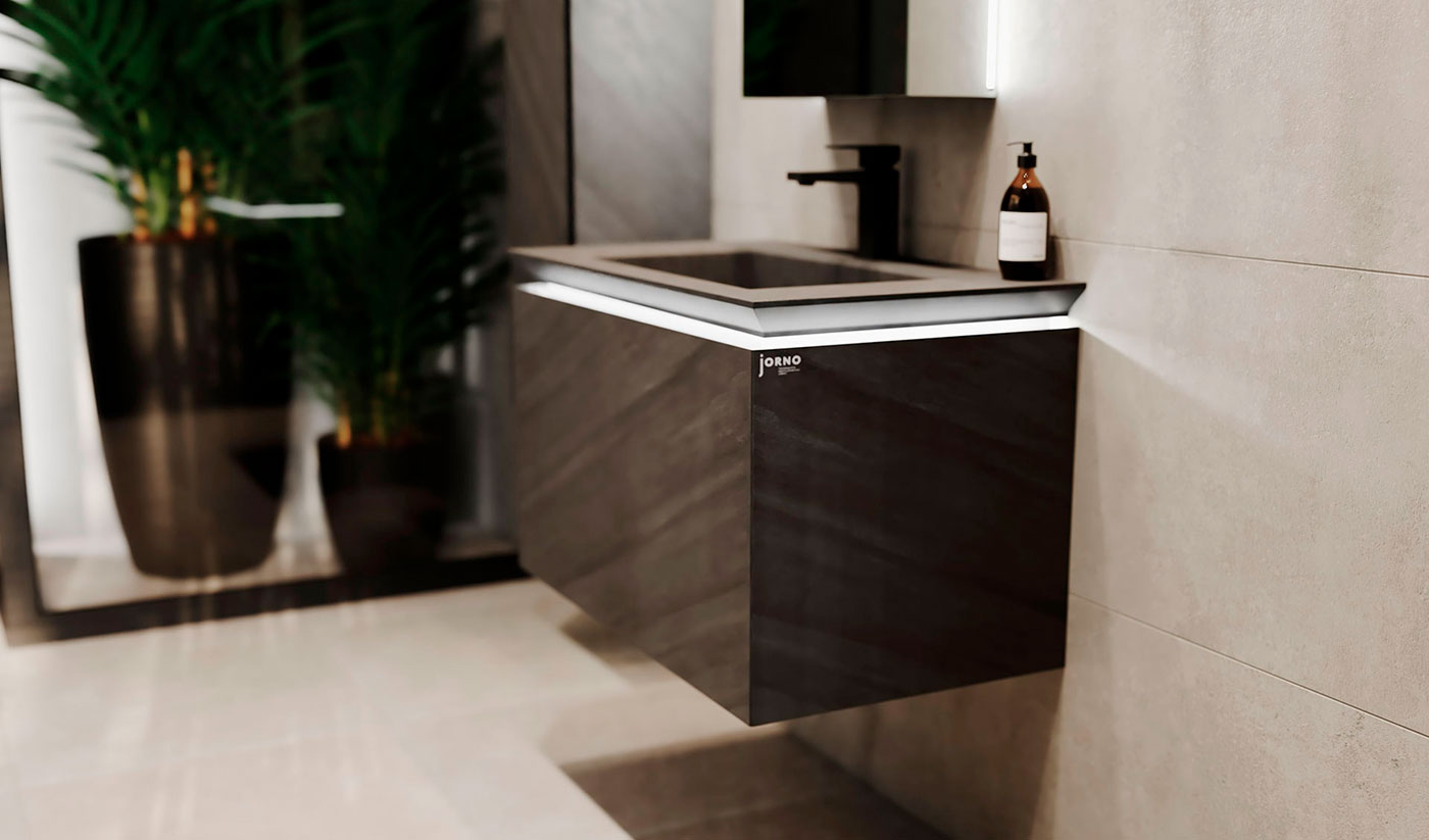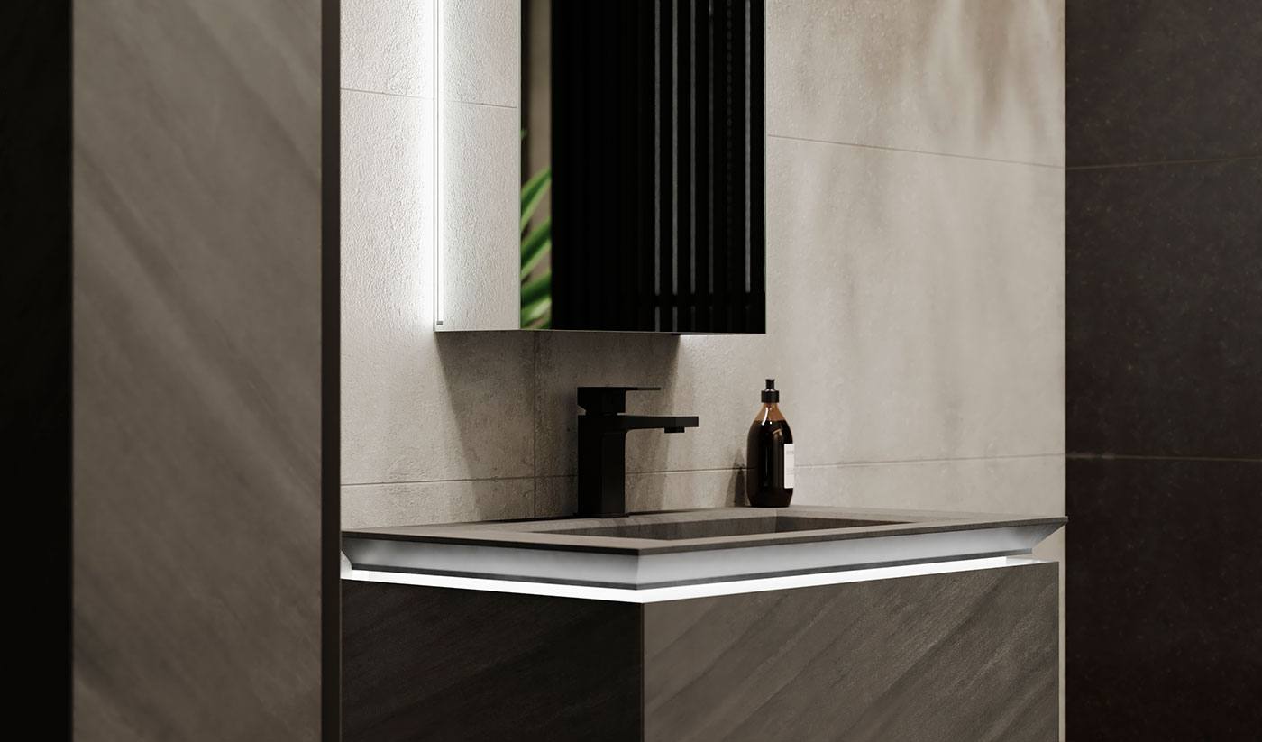 Тумба оснащена подсветкой раковины с диммерным выключателем.