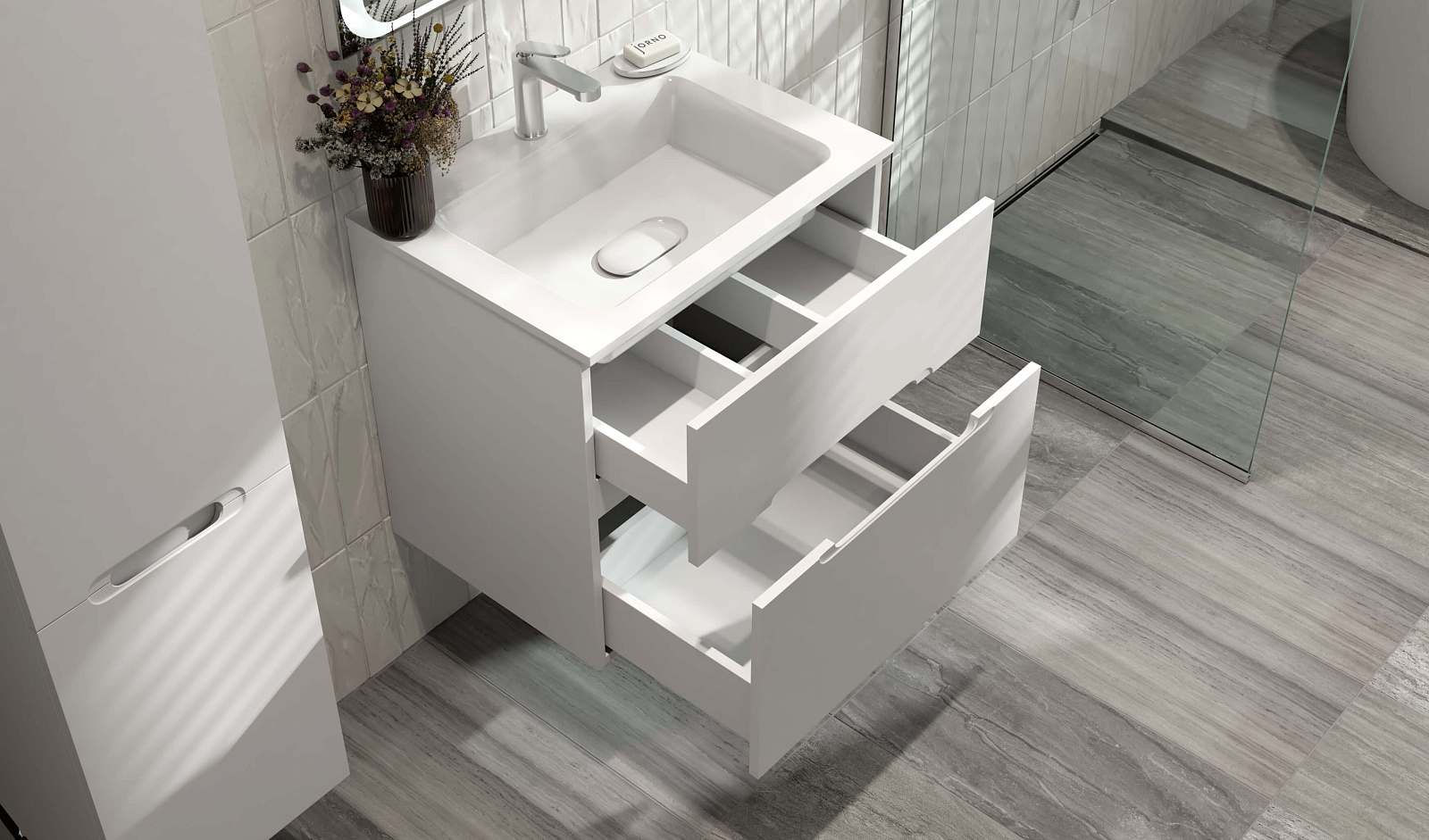 Коллекция Modul — это современное сочетание минимализма и творчества c...выделенными функциональными элементами. Четкие прямые линии краев тумбы и раковины образуют форму лаконичного куба, в котором будто вырезаны ручка и раковина с округлыми краями. Отсутствие лицевой фурнитуры создает чистый образ и решает функцию открывания максимально эффективно. Большие корпуса мебели вместительны, нейтральны по цвету и форме, что позволяет вписываться в разные пространства.