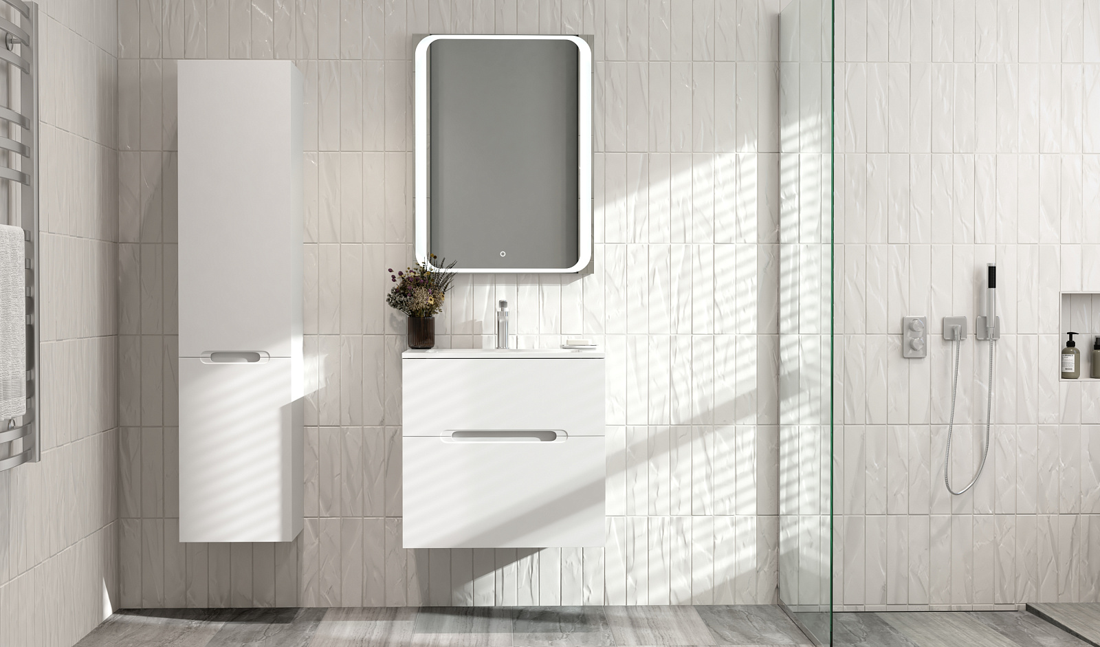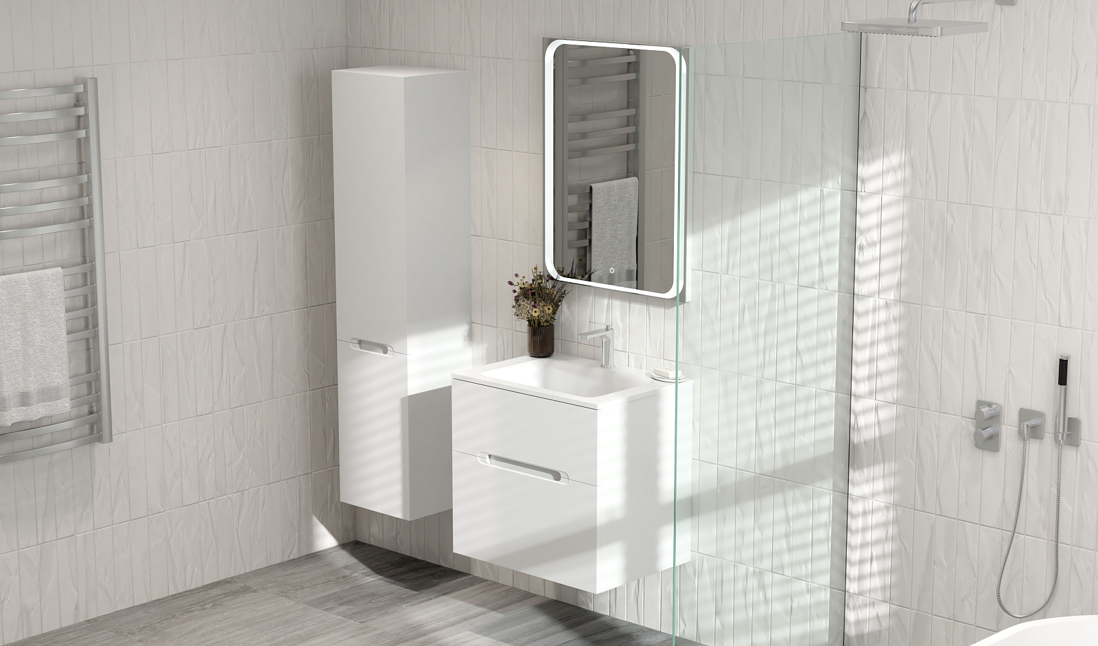 Широкий размерный ряд тумб позволит подобрать комплект для ванной комнаты любой площади.