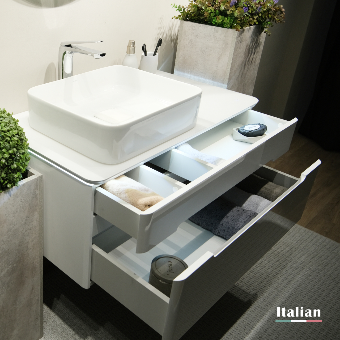 Выдвижные ящики оснащены системой плавного закрывания.