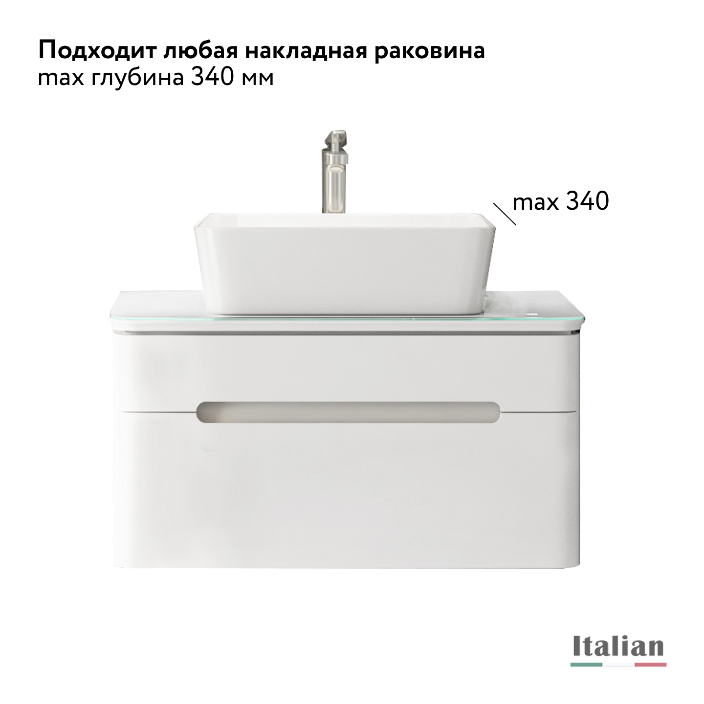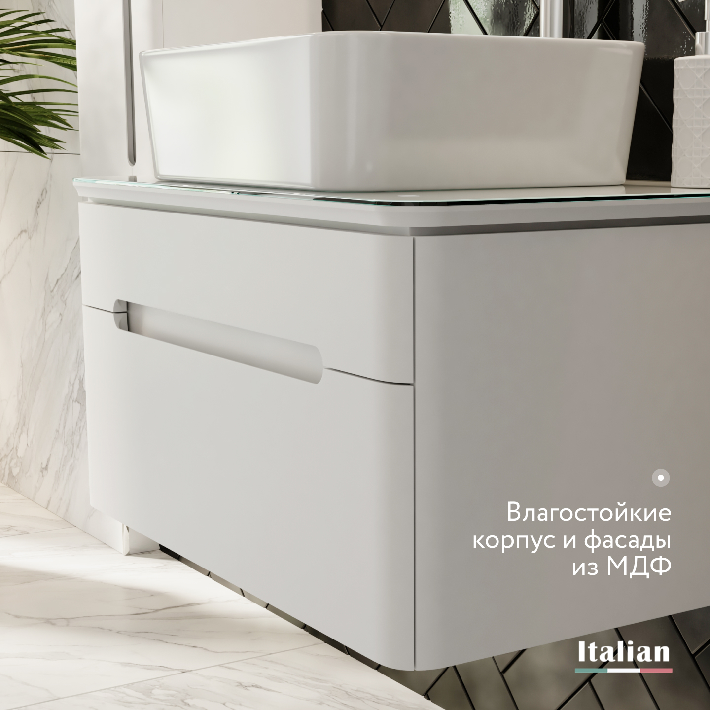Тумба полностью выполнена из влагостойких материалов.