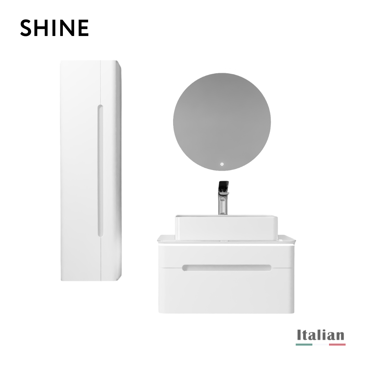 Подсветка Колизея и повторяющиеся арки подарили образ плавных линий, которые воплотились в коллекции Shine. Мягкость образа комплекта при лаконичности форм создает ощущение легкости. За счет этого он впишется практически в любой интерьер и привнесет в него шарм и чистоту.