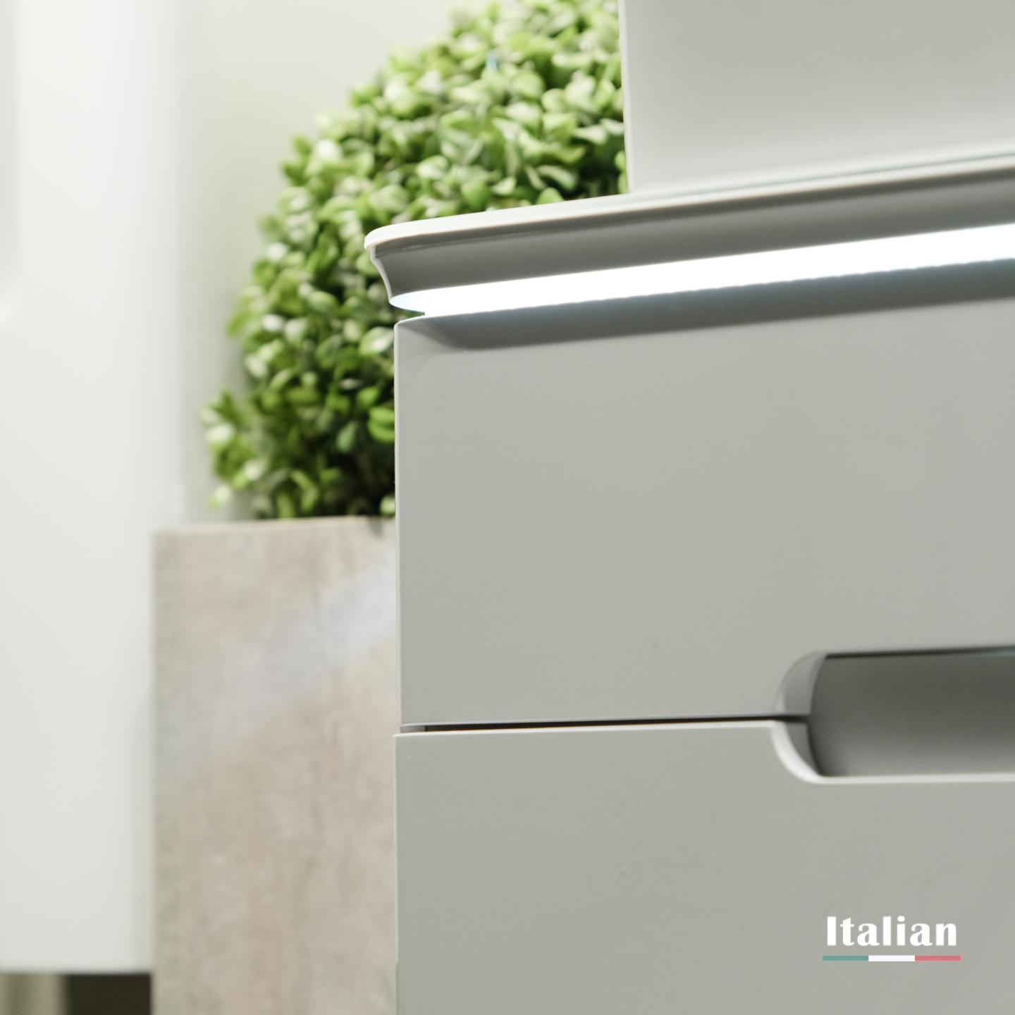 Само название коллекции говорит о том, что одним из основных достоинств данного комплекта является подсветка. Свет столешницы тумбы можно регулировать от деликатного мягкого до более яркого.