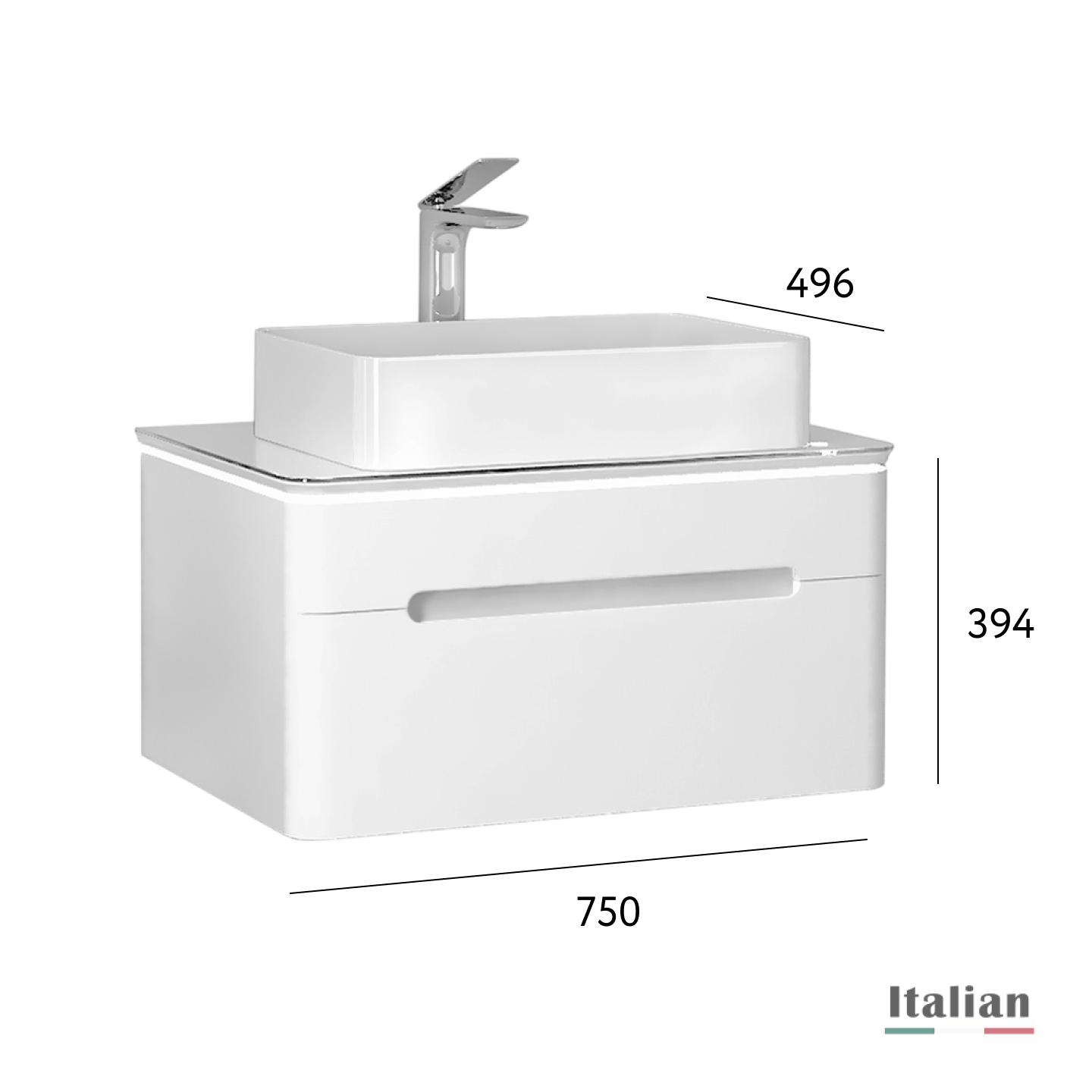 Тумба представлена в 2 размерах: 75 и 90 см в белом цвете.