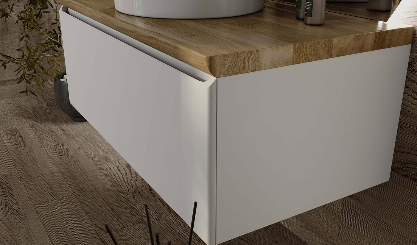 Благородная поверхность столешницы из натурального дерева подчеркивает современную ценность природных материалов. Оригинальная форма столешницы с мягкими радиусными линиями придает изысканность и респектабельность тумбе, а интегрированная ручка завершает лаконичный образ. У тумбы есть дополнительный скрытый ящик, который увеличивает место хранения. Ручная обработка деревянной столешницы специальным лаком обеспечивает влагостойкость и придает внешний вид свежеспиленного дерева. Матовая поверхность тумбы подчеркивает мягкость формы и дополняет текстуру дерева.
