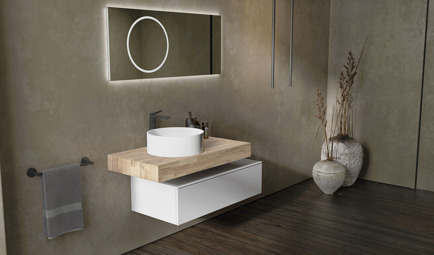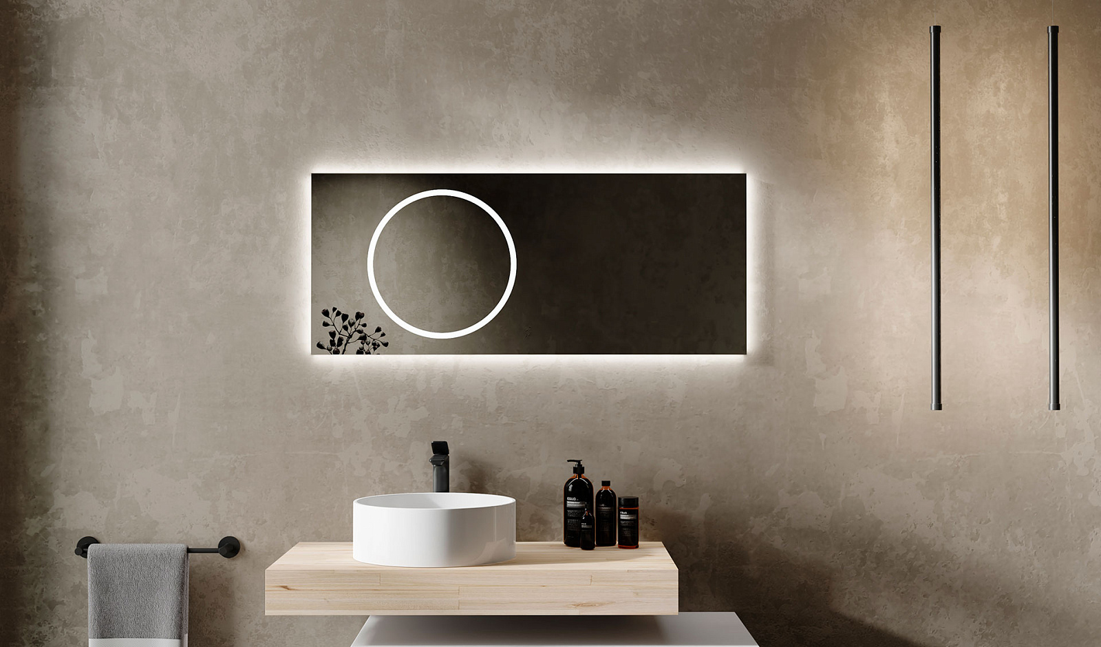 Зеркало оснащено подсветкой и бесконтактным включением.