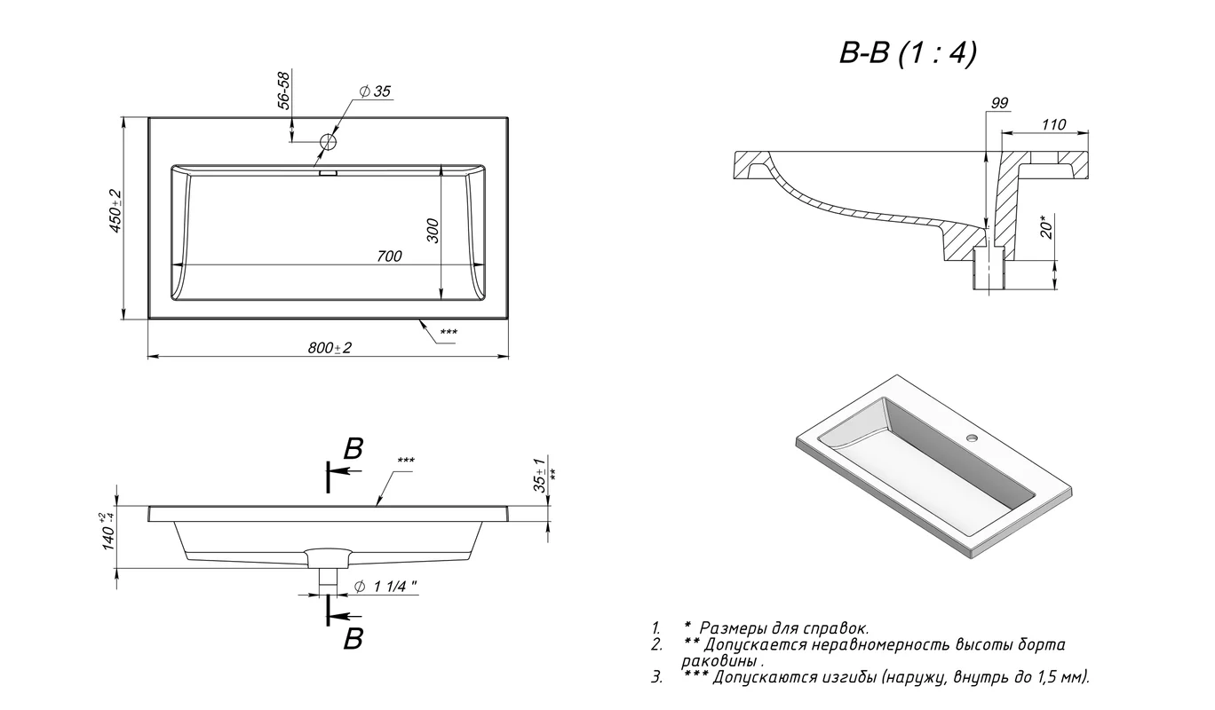 Раковина Luxor с щелевым сливом