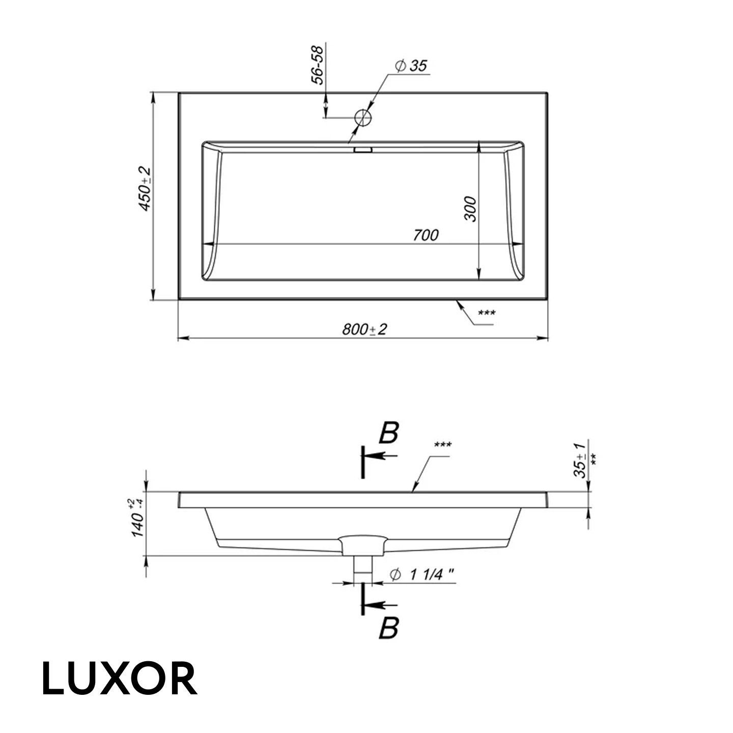 Раковина Luxor с щелевым сливом |