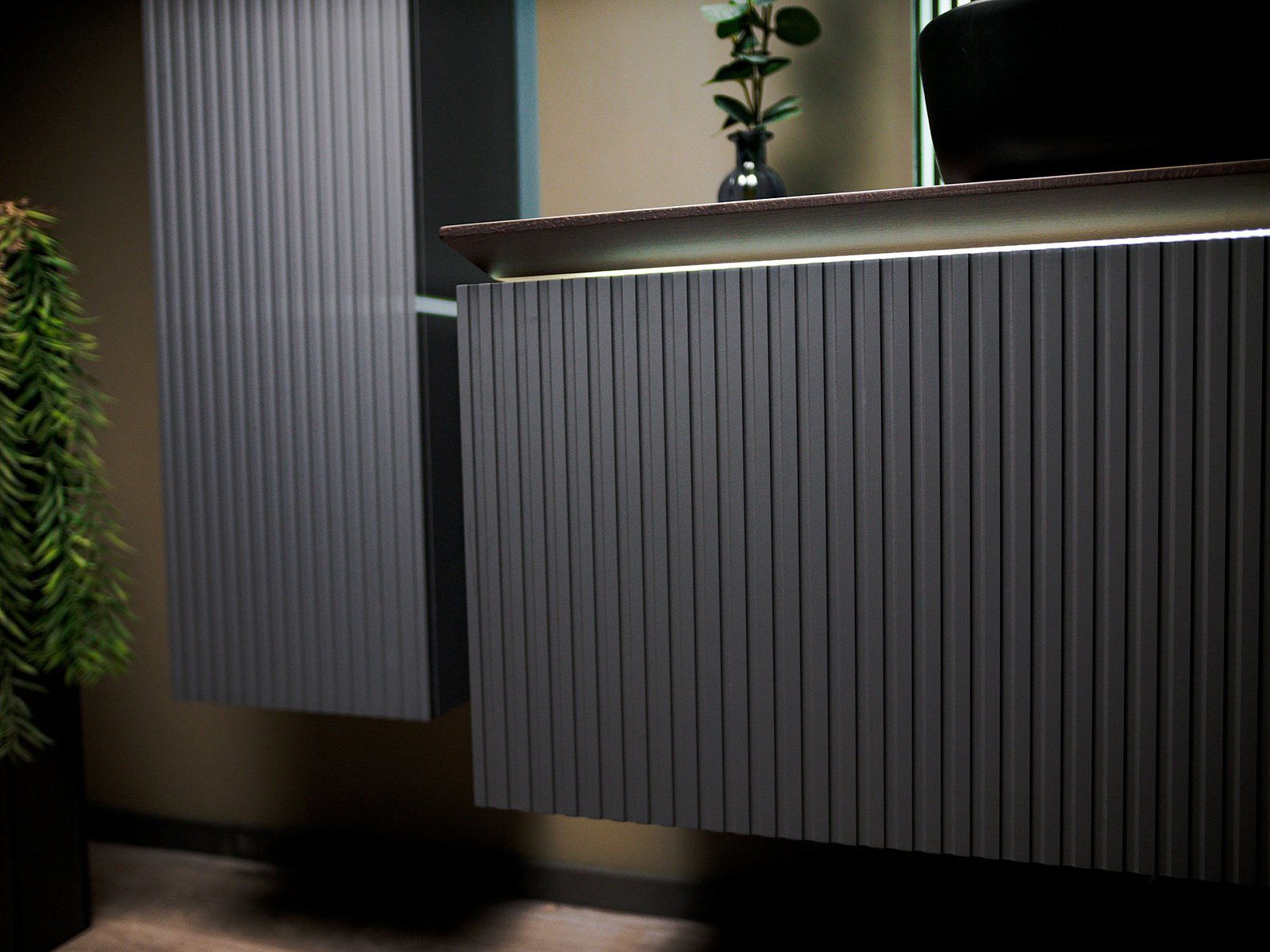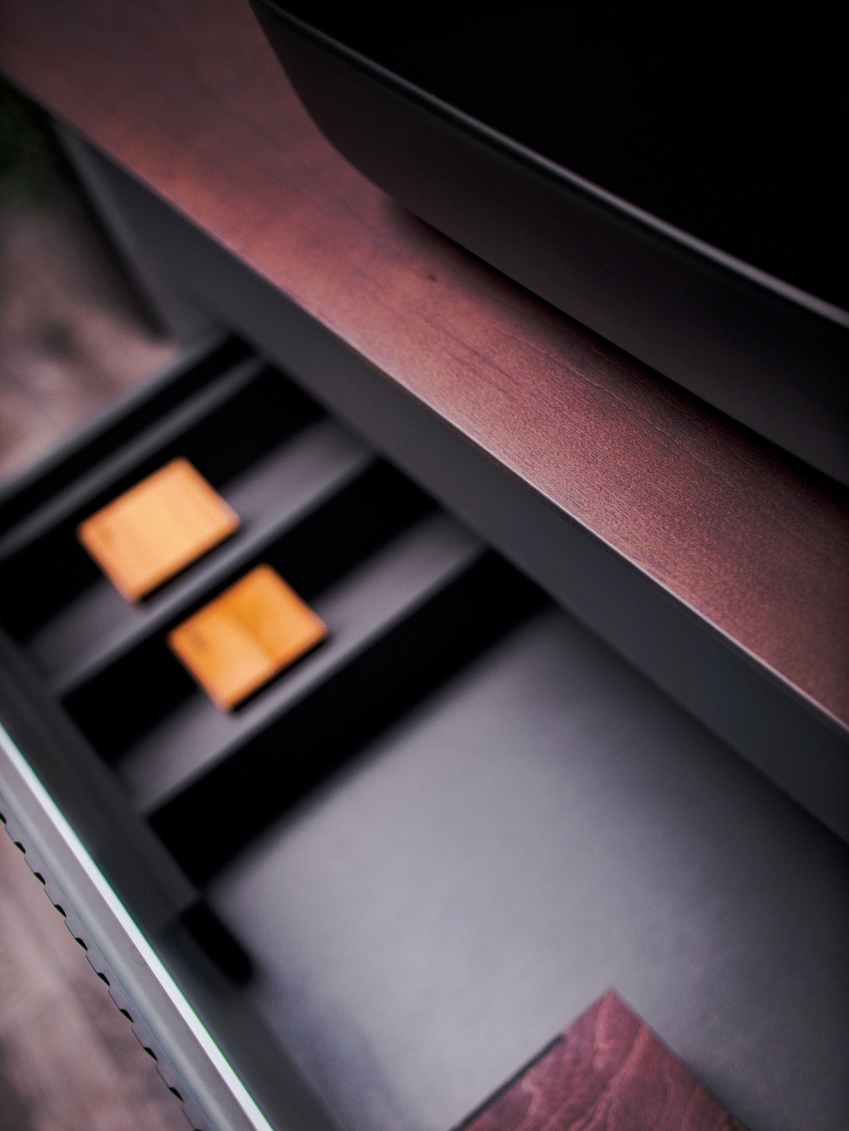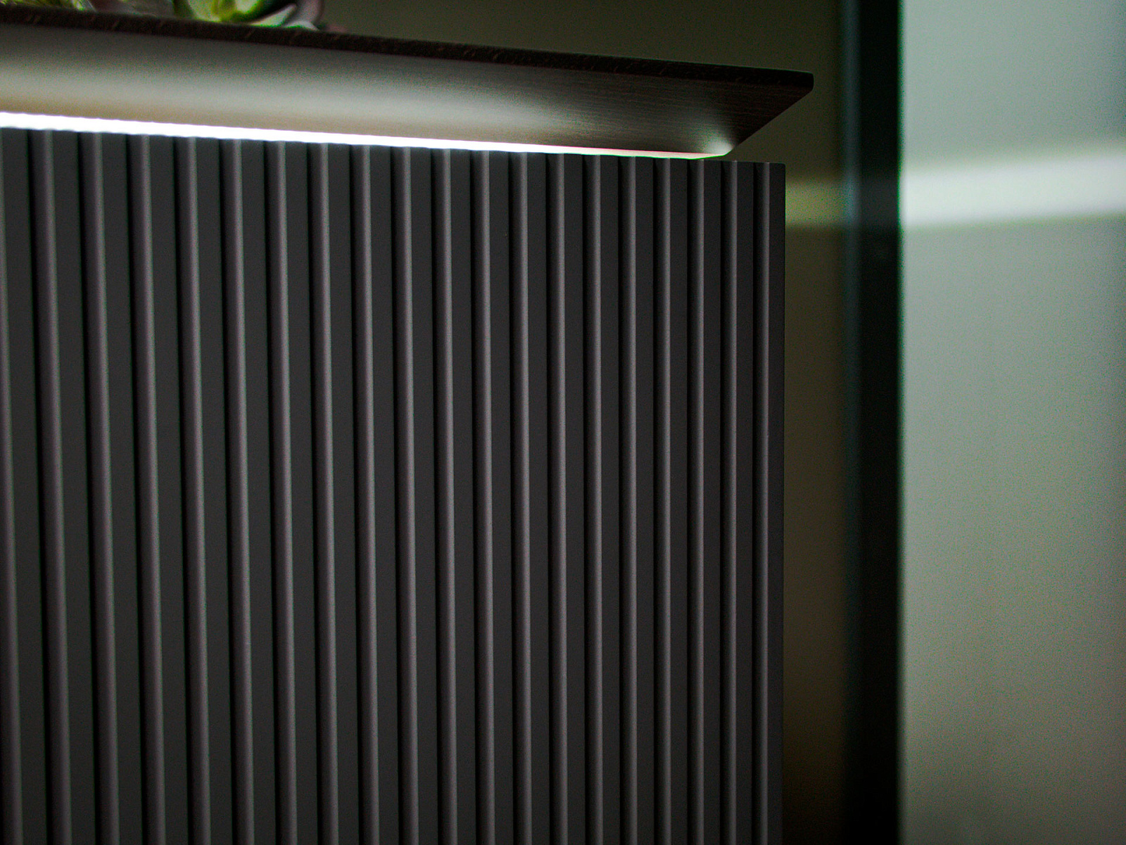 Коллекция Strong пропитана величием римской архитектуры с ее повторяющимися колоннами и арками, монументальными опорами, отражая при этом непринужденность современной городской жизни. Натуральное дерево в сочетании с тонкими линиями краев столешницы и повторяющимися линиями на фасаде, создают баланс брутальности и утонченности.