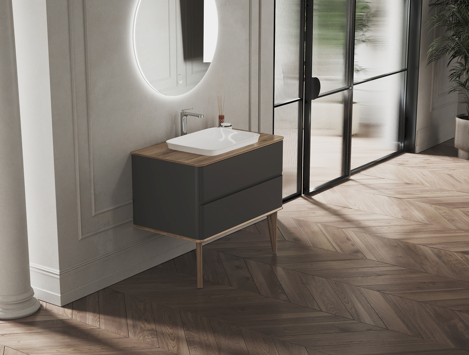 Коллекция Avante,выполненная в стиле ар-деко, словно создана для того, чтобы стать центром внимания в интерьере, сочетая функциональность и эстетический вид. Нежная текстура корпуса и фасада софт-тач приятно ощущается на ощупь, а матовая поверхность добавляет нотку утончённости и не отражает лишних блесков, создавая атмосферу уюта.