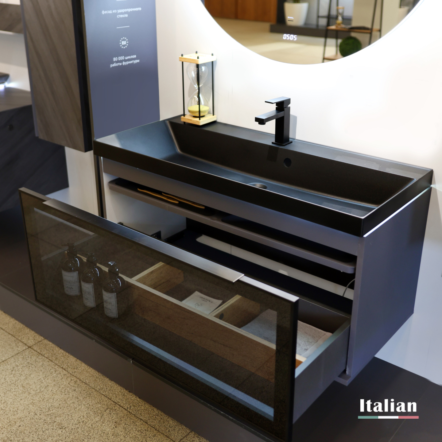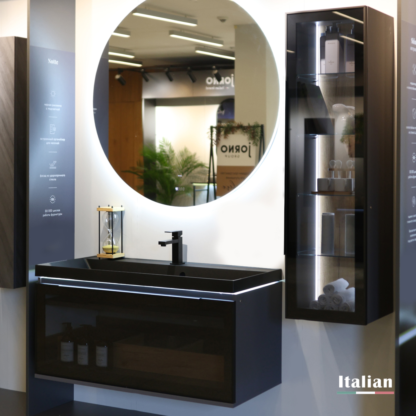 Коллекция мебели для ванных комнат Notte представляет собой уникальное сочетание брутальности и хрупкости.