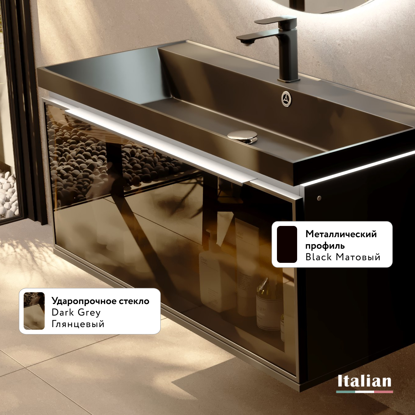 Фасад из ударопрочного стекла Dark Grey – это не только эстетически привлекательный элемент, но и залог безопасности. Тонировка придаёт мебели стильный внешний вид, а защитная обработка поверхности предотвращает возможные повреждения.